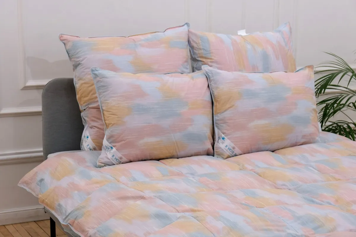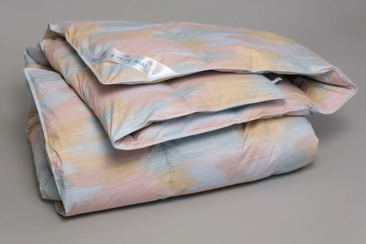 Наполнение состоит из смеси 85% тщательно очищенного пера и 15% высокотехнологичного пуха, прошедших современную многоступенчатую переработку. Такое сочетание обеспечивает приятную мягкость, умеренную упругость и отличную теплоизоляцию, создавая комфорт даже в прохладное время года. Чехол выполнен из прочного инлета из 100% хлопка с лёгким характерным «шуршащим» эффектом, который надёжно удерживает наполнитель и хорошо пропускает воздух. Кассетная стёжка гарантирует равномерное распределение наполнителя и предотвращает его смещение, сохраняя форму изделия на долгие годы.