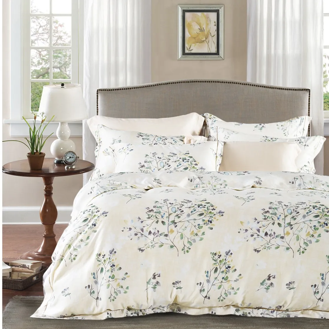 Выполненный из экологичного тенселя, он поражает мягкостью, шелковистым блеском и долговечностью. Ткань прекрасно дышит, отводит влагу и сохраняет приятную прохладу летом, даря уют и здоровый микроклимат в любое время года. Молочно-бежевый фон украшен изящным растительным принтом в пастельных зелёно-лиловых тонах, создающим атмосферу лёгкости и спокойствия. Материал устойчив к выцветанию и сохраняет гладкость даже после множества стирок.