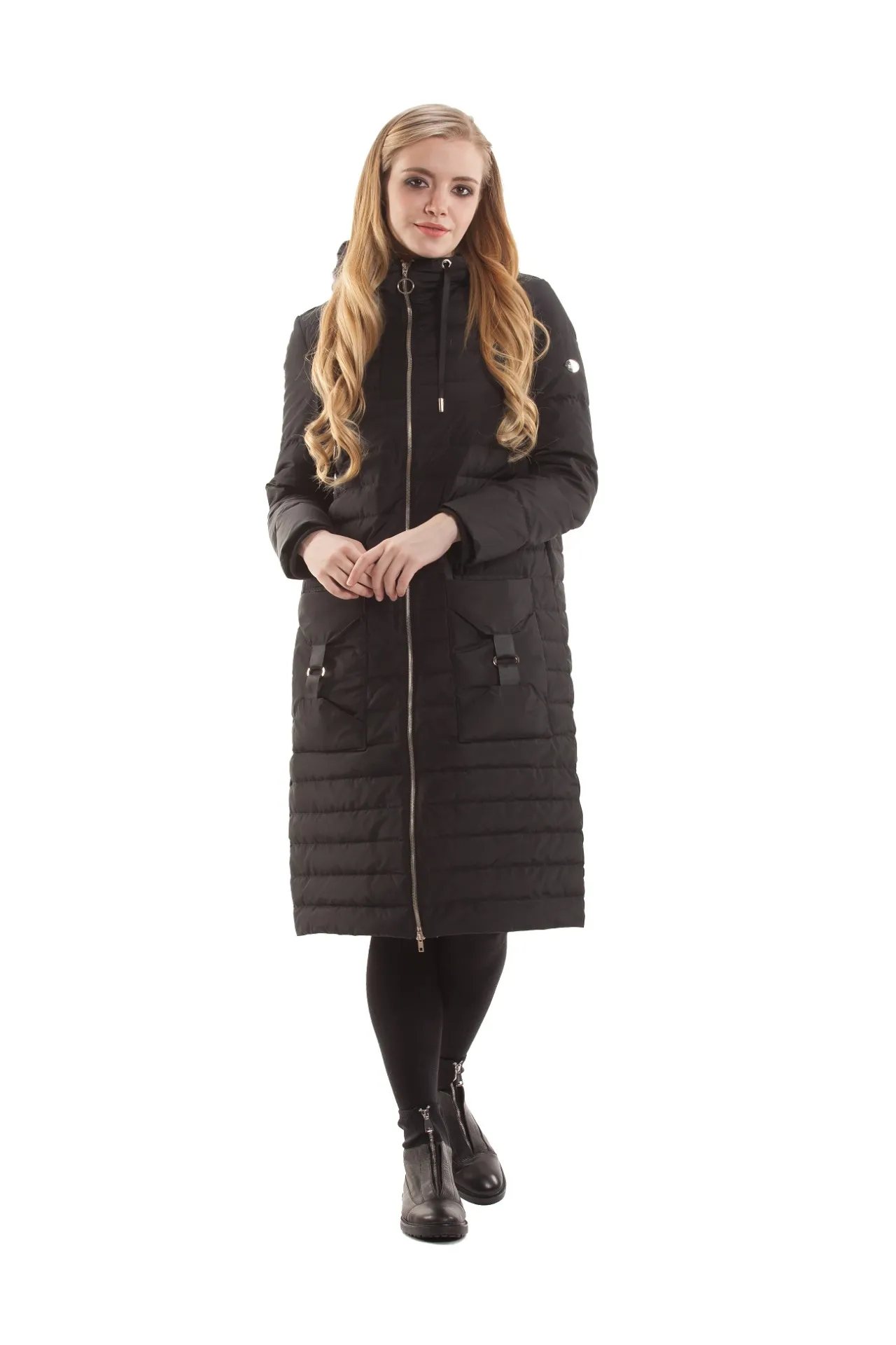 Горизонтальная стёжка придаёт изделию аккуратный объём, подчёркивая женственный силуэт. Функциональные карманы с молниями надёжно сохранят руки в тепле и защитят необходимые мелочи.