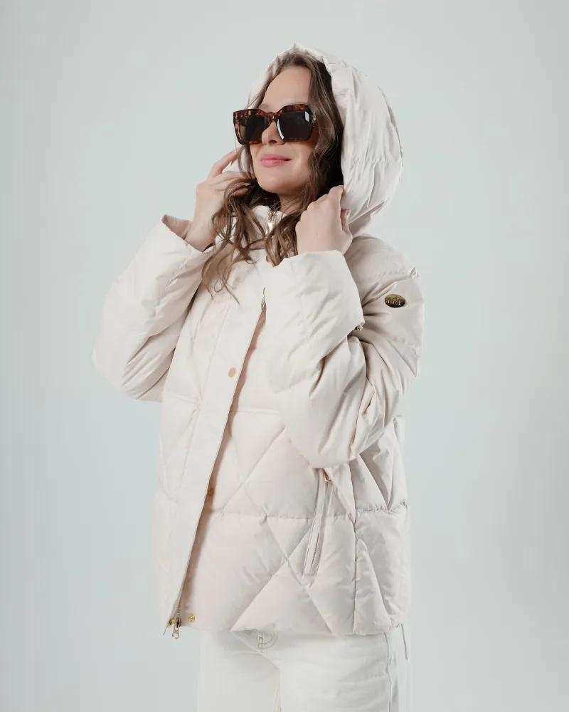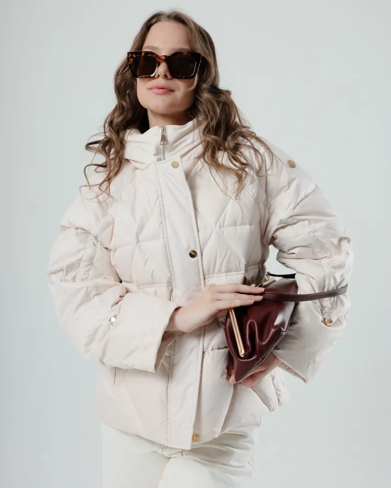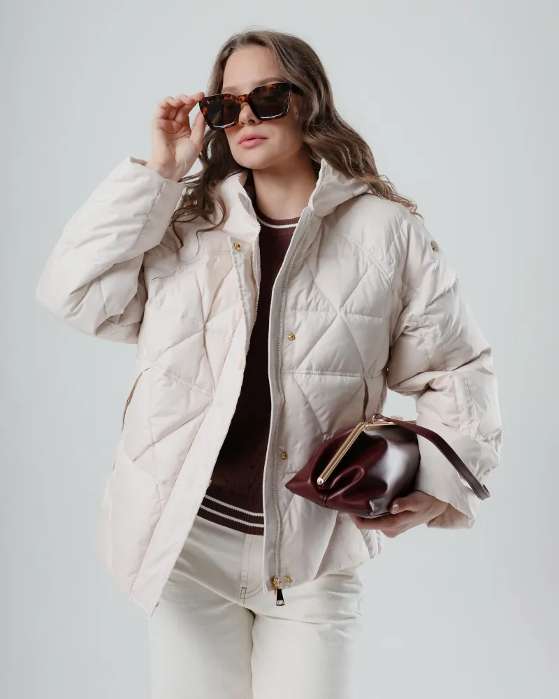 Особенность модели – эффектная стёжка в виде крупных геометрических ромбов, которая не только добавляет динамики силуэту, но и поддерживает равномерное распределение наполнителя. Удобный высокий воротник и регулируемый капюшон создают дополнительную защиту от ветра, а застёжка на молнию и кнопки делает посадку плотной и надёжной. Продуманные карманы на молниях сохранят руки в тепле и уберегут мелочи от потери.