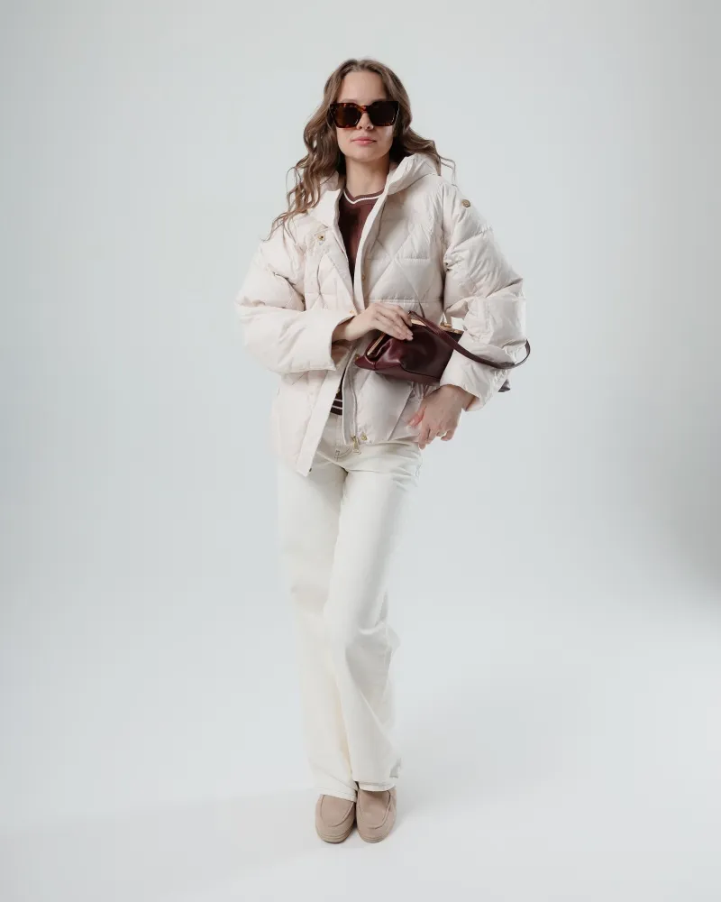 Лёгкий, но плотный верх из современного влагозащитного материала надежно защищает от ветра и непредсказуемых осадков, оставаясь приятным на ощупь и сохраняющим форму. Утеплитель обеспечивает комфортное тепло в прохладную погоду, не создавая лишнего объёма, поэтому куртка выглядит аккуратно и элегантно.