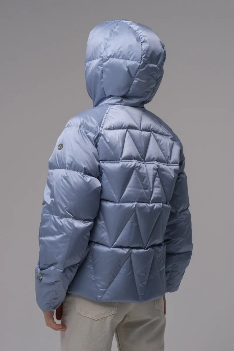 Особенность модели – эффектная стёжка в виде крупных геометрических ромбов, которая не только добавляет динамики силуэту, но и поддерживает равномерное распределение наполнителя. Удобный высокий воротник и регулируемый капюшон создают дополнительную защиту от ветра, а застёжка на молнию и кнопки делает посадку плотной и надёжной. Продуманные карманы на молниях сохранят руки в тепле и уберегут мелочи от потери.