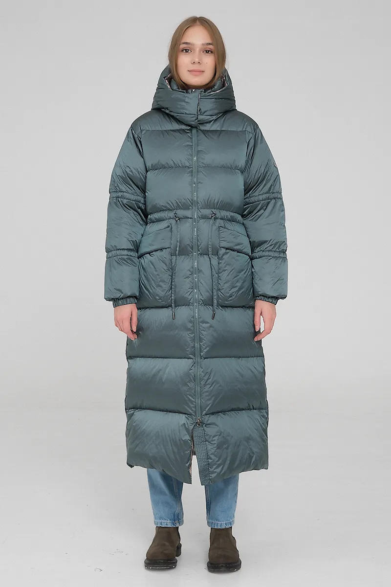 Большие карманы обеспечивают дополнительный комфорт в носке, удобны для хранения разных мелочей. Пуховик наполнен натуральным 100% сибирским пухом, что является гарантией настоящего тепла и качества даже для холодной зимы. Длина ниже колена – абсолютна универсальна, поэтому модель можно носить с любой одеждой – любимыми джинсами, вечерним платьем или деловым костюмом. Кулиска на талии регулируется, что поможет подчеркнуть или расслабить зону пояса. Теплый капюшон отлично защищает от ветра и мороза.