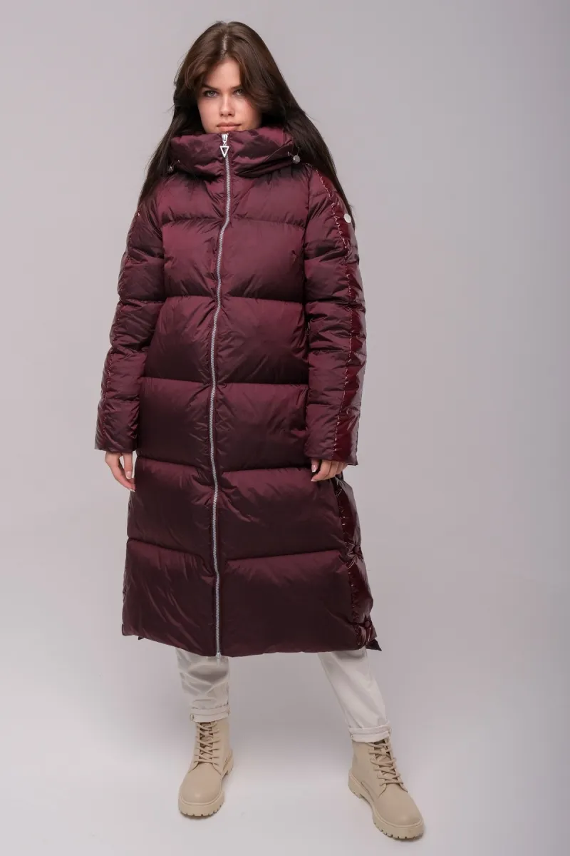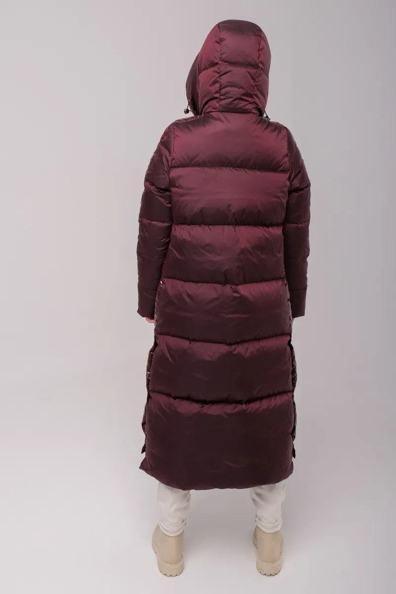 Удлиненный крой делает модель универсальной и удобной: он прикрывает бедра, создавая дополнительную защиту от ветра и холода. Лаконичный силуэт смотрится современно и элегантно, а контрастные вставки из глянцевой ткани по бокам и рукавам добавляют изысканности и оригинальности. Высокий ворот и объемный капюшон создают надежный барьер от зимних непогодных условий, обеспечивая дополнительный комфорт.