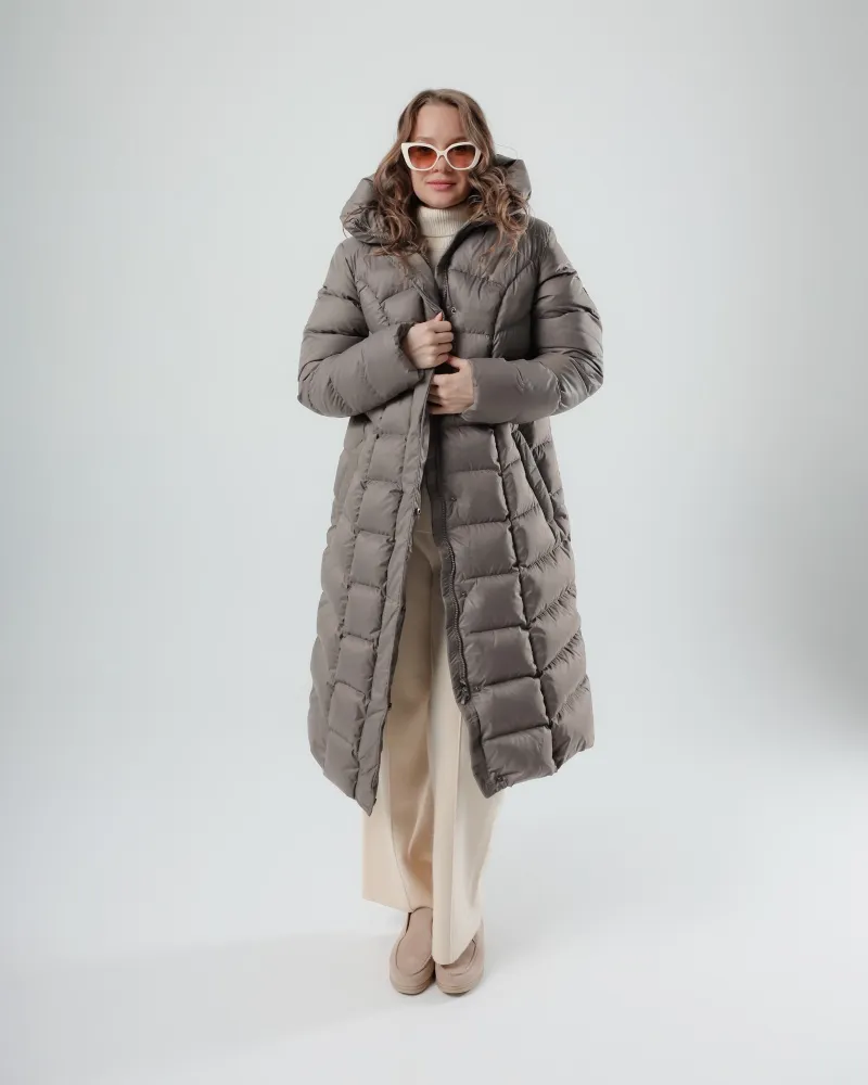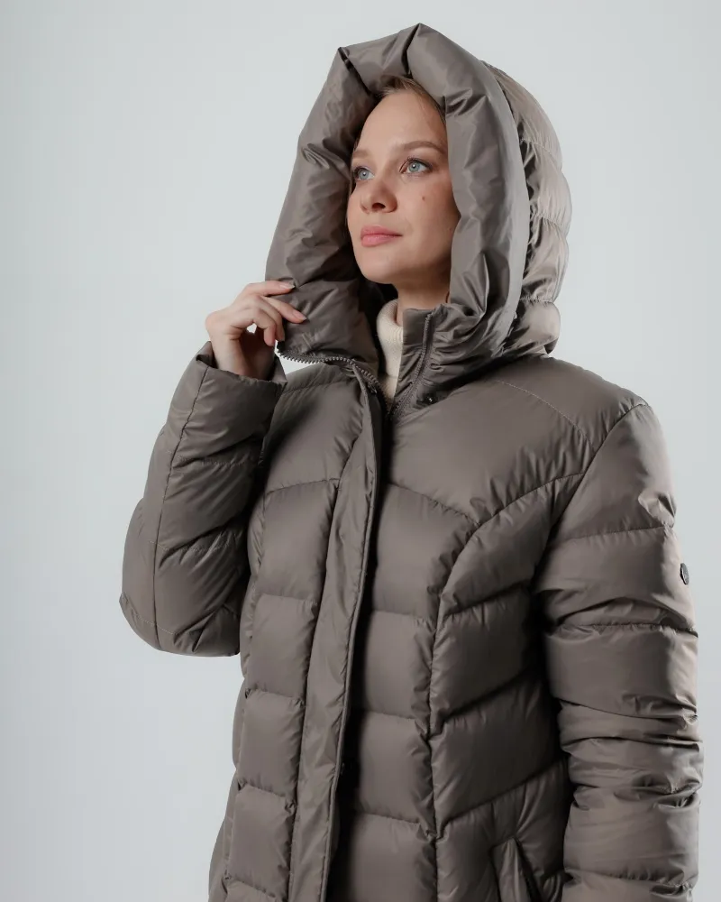 Модель идеально подойдет для женщин с пышными формами, желающих выглядеть в пуховике элегантно и женственно. Вертикальные линии спереди позволят выгодно вытянуть силуэт, скорректировав недостатки фигуры и подчеркнув ее достоинства. Наполнитель из 100% гусиного пуха создает по-настоящему теплый пуховик, в нем вы не замерзните даже в сильные морозы. Карманы по бокам удобны для хранения мелочей.