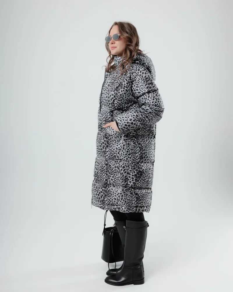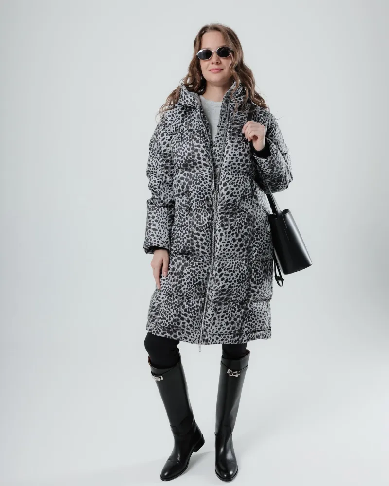 Модель представлена в широкой палитре оттенков: от классических однотонных — темно-синий, черный, бежевый и другие — до эффектных вариантов с леопардовым принтом, которые станут акцентом в зимнем гардеробе. Такой выбор позволяет подобрать пуховик под любое настроение и стиль: от строгого и делового до яркого и смелого. Современный дизайн, функциональность и универсальность делают «Злату» базовой моделью, которая остается актуальной не один сезон.
