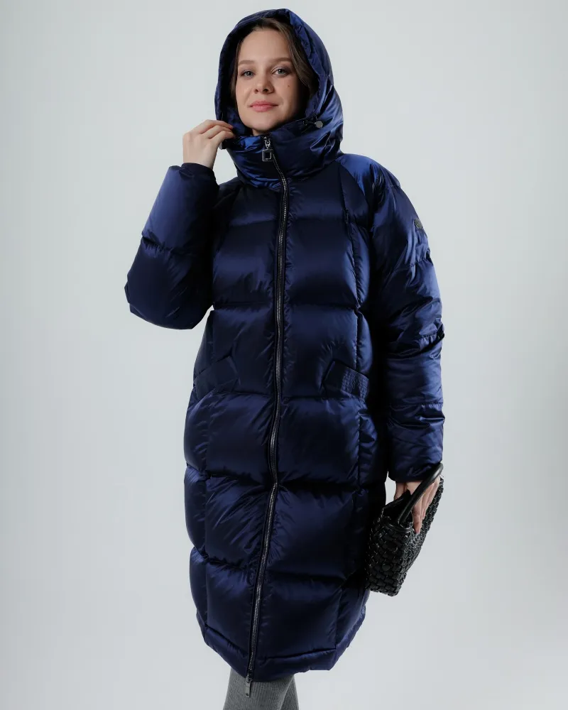 Утеплитель из 100% пуха обеспечивает надежную защиту от мороза и сохраняет комфорт даже при температуре до –25 градусов. Удобный крой и продуманная длина делают пуховик идеальным выбором для любого типа фигуры: он не сковывает движения, красиво садится и визуально подчеркивает силуэт.