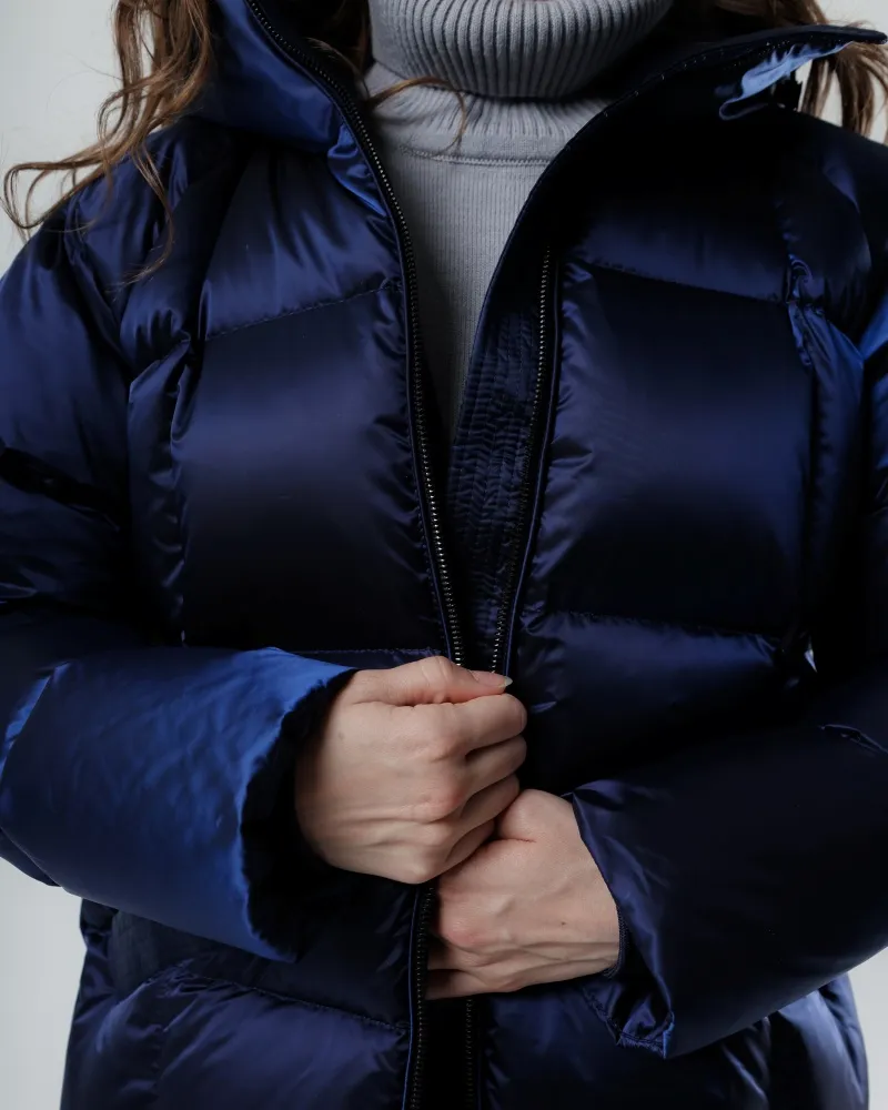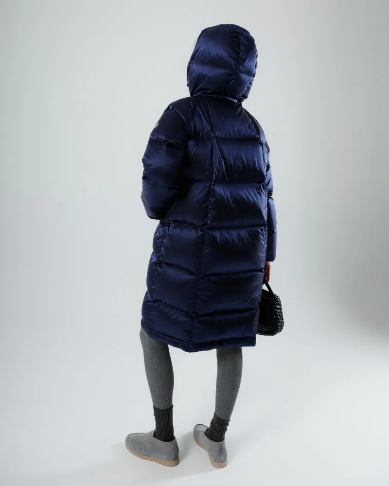 Высокий ворот и объемный капюшон надежно защищают от ветра и снега, а вместительные карманы добавляют комфорта и практичности в повседневной носке.