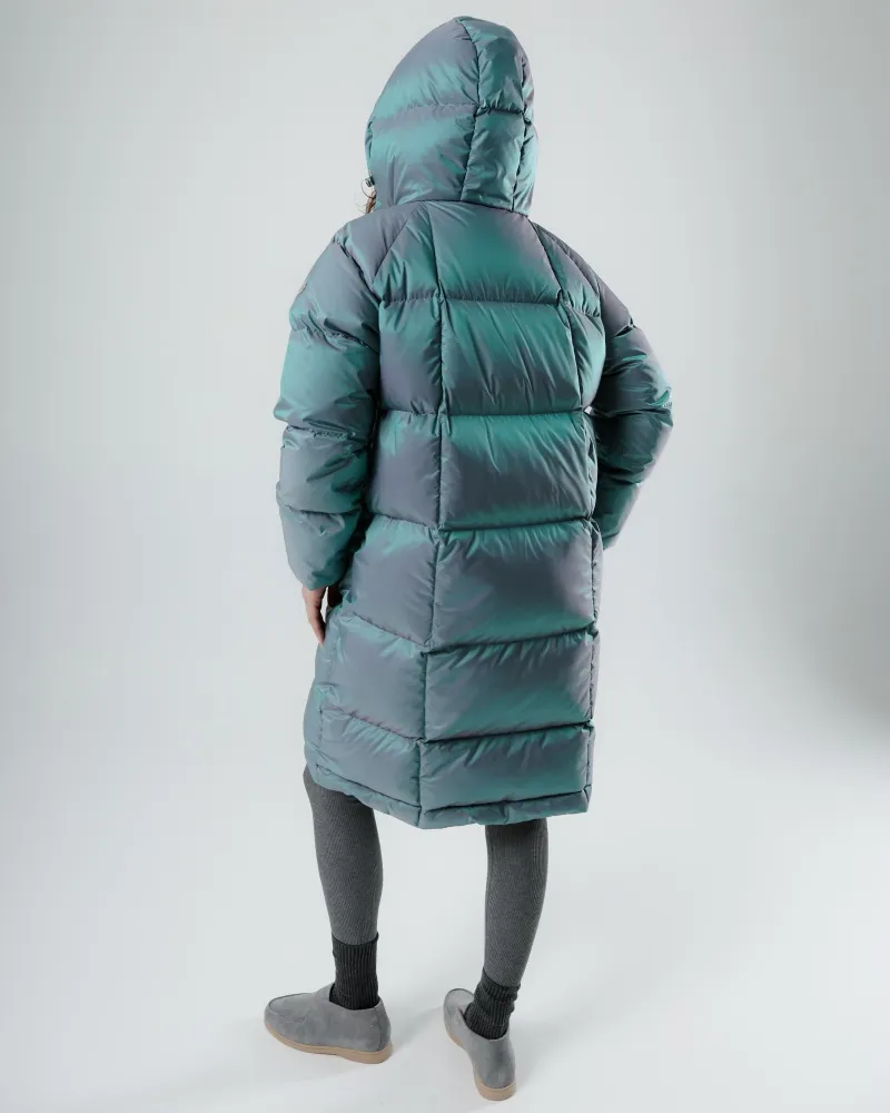 Утеплитель из 100% пуха обеспечивает надежную защиту от мороза и сохраняет комфорт даже при температуре до –25 градусов. Удобный крой и продуманная длина делают пуховик идеальным выбором для любого типа фигуры: он не сковывает движения, красиво садится и визуально подчеркивает силуэт.