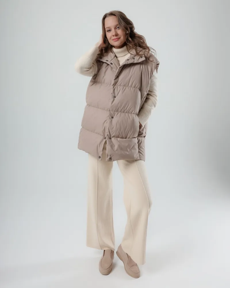 Описание:Настоящий тренд этого сезона! Удлиненный жилет с капюшоном для создания модных, актуальных образов на каждый день.