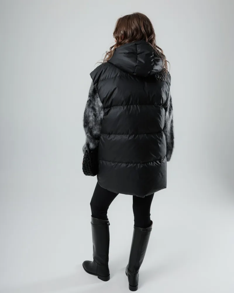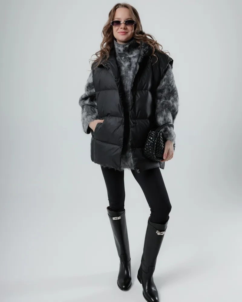 Описание:Настоящий тренд этого сезона! Удлиненный жилет с капюшоном для создания модных, актуальных образов на каждый день.